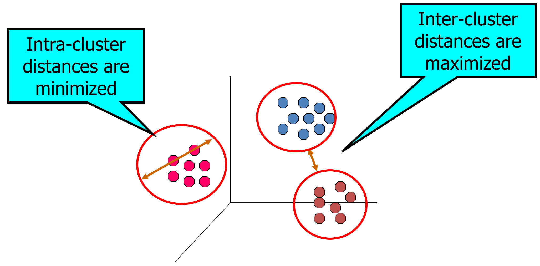 - members are highly similar to each other (i.e. minimize within-cluster distances)